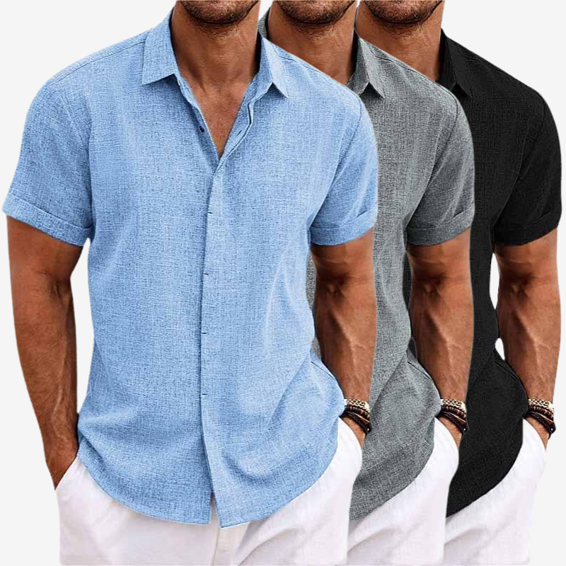 Sebastiaan | Licht linnen overhemd met korte mouwen
